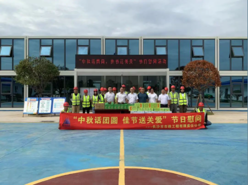 公司總經(jīng)理石含,副總經(jīng)理丁紅軍為靳江河西岸(含東山灣路)綜合整治工程項目、青竹湖統征儲備地塊配套路網(wǎng)工程項目 、秋江西路等六條路工程項目、長(cháng)沙機場(chǎng)中軸大道工程項目的一線(xiàn)員工發(fā)放了月餅、水果、礦泉水等慰問(wèn)品,帶去公司對他們的問(wèn)候和囑托,對大家的敬業(yè)奉獻精神表示高度贊揚,并叮囑大家一定要保重身體,注意安全,圓滿(mǎn)完成施工任務(wù)。